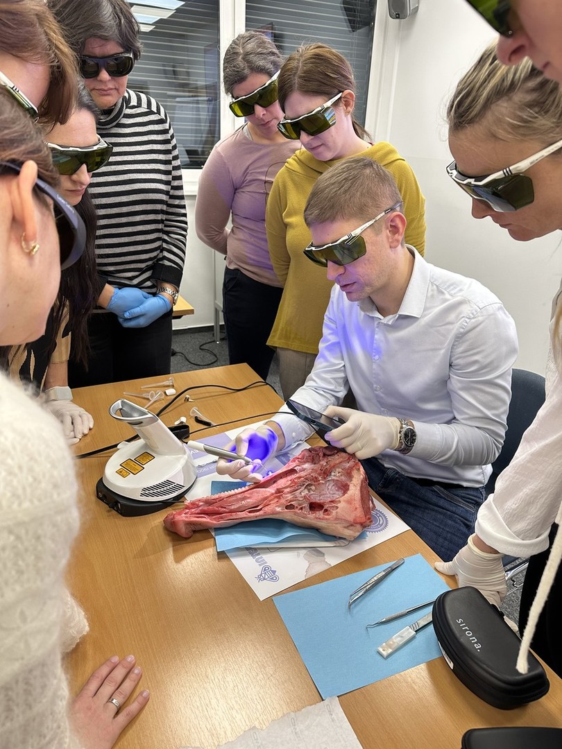 • rad sa SiroLaser-om Blue na svinjećoj čeljusti.