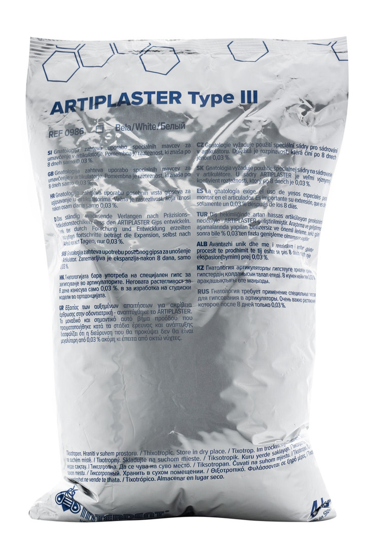 Gnatologija zahteva uporabo specialnih mavcev za umavčenje v artikulatorju. Pomembna je razteznost, ki znaša po 8 dneh samo 0,03 %. EN ISO 6873
