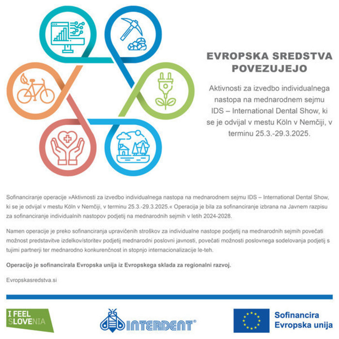 Podjetje Interdent d.o.o. je v okviru Javnega razpisa za sofinanciranje individualnih nastopov podjetij na mednarodnih sejmih v letih 2024–2028 uspešno izvedlo predstavitev na mednarodnem sejmu IDS – International Dental Show, ki je potekal v Kölnu, Nemčija.