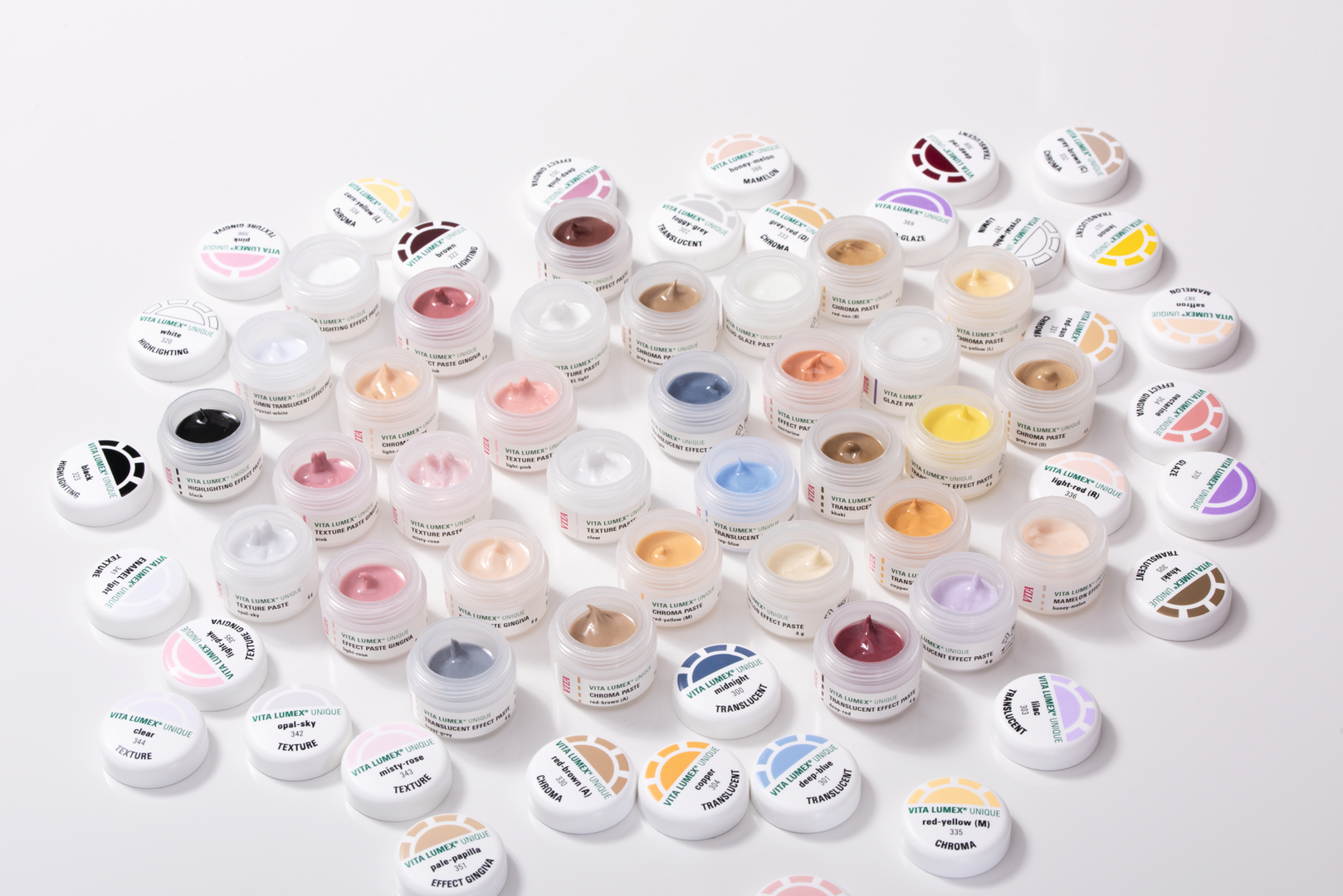 Že z enim samim pečenjem dosežete stabilne barve, naravno globino in izjemen sijaj – brez kompromisov. Idealno za cirkon, litijev disilikat in feldšpat keramiko. Za monolitne protetične nadomestke, ki izstopajo z edinstveno barvno dinamiko in površinsko teksturo.